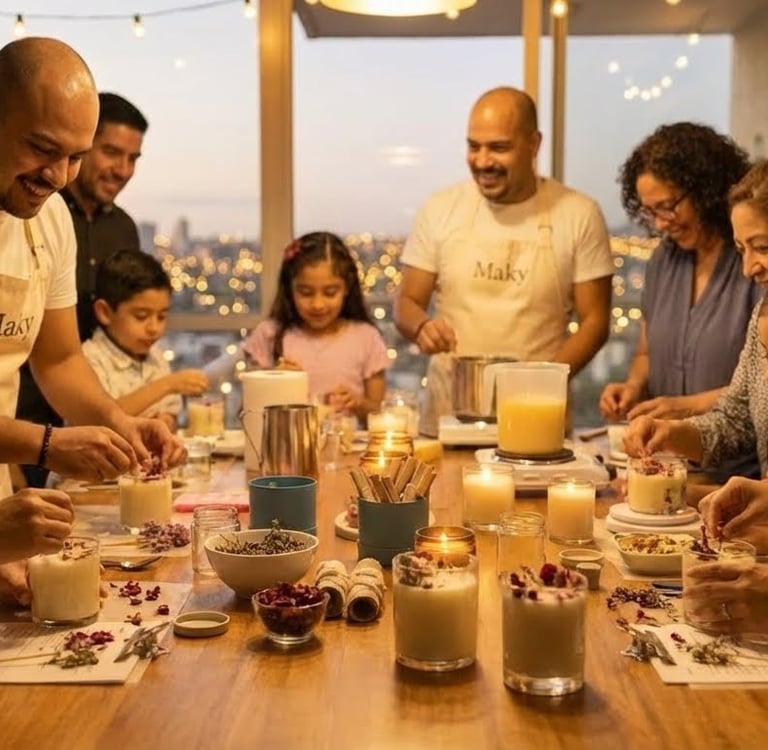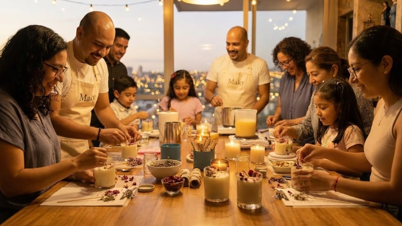 Maky es también un espacio para compartir. Más allá de nuestras velas, ofrecemos talleres familiares y encuentros donde la creatividad se convierte en un lazo de unión. Creemos que encender una vela juntos es un acto simbólico: iluminar no solo un espacio físico, sino también la relación entre quienes participan. Nuestros talleres son momentos para aprender, reír, crear y llevarse un recuerdo tangible de la experiencia vivida.